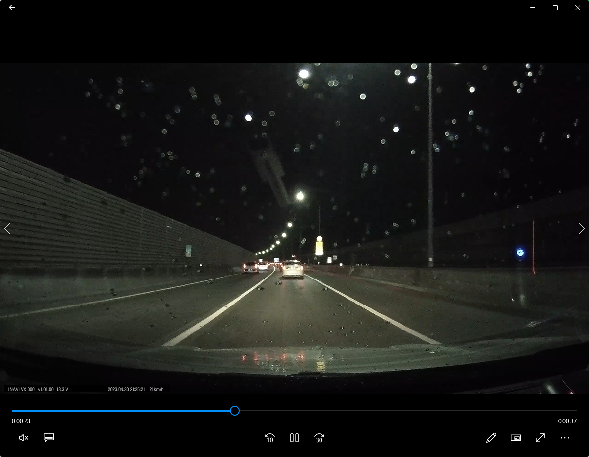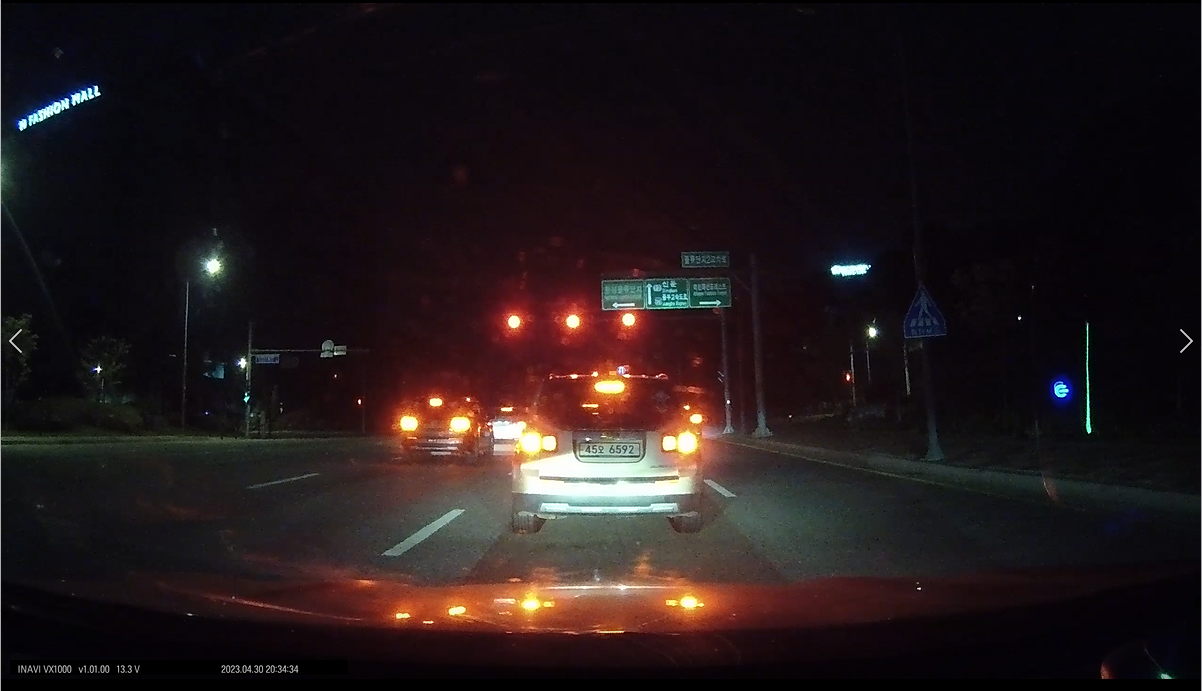 비 오는 날 야간 주행 영상입니다. 야간에도 나이트비전으로 선명한 블랙박스 영상이 촬영됩니다. 화질은 야간에도 촬영된 블랙박스 영상의 화질이 좋았습니다.