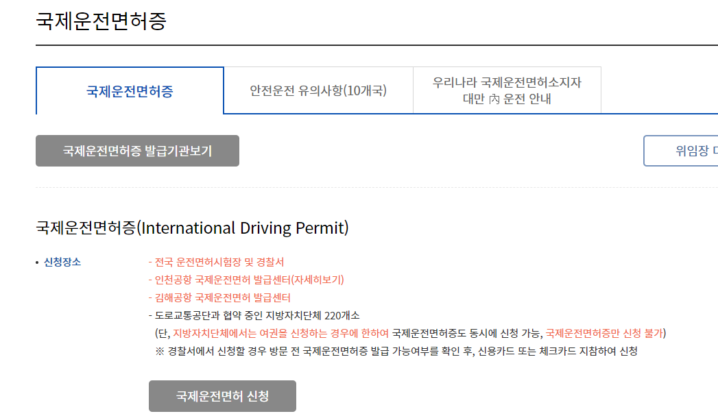 경찰서에서 신청할 경우, 국제운전면허증 발급 여부를 사전에 확인하고 신청 시 신용카드나 체크카드를 지참하는 것이 좋습니다.