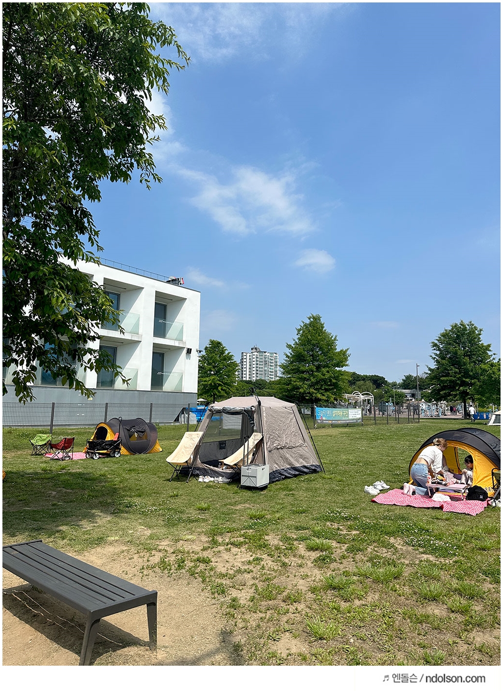 이번주에 딸아이 친구들과 한강공원에 놀러갔습니다. 평소에도 광나루 한강공원에 놀거리가 많아 자전거도 타고 캠핑장처럼 텐트 치는 곳에는 텐트 치고 놀고 있습니다. 하지만 한공공원은 캠핑장이 아닙니다. 그래도 다들 캠핑장비를 많이 들고 옵니다.