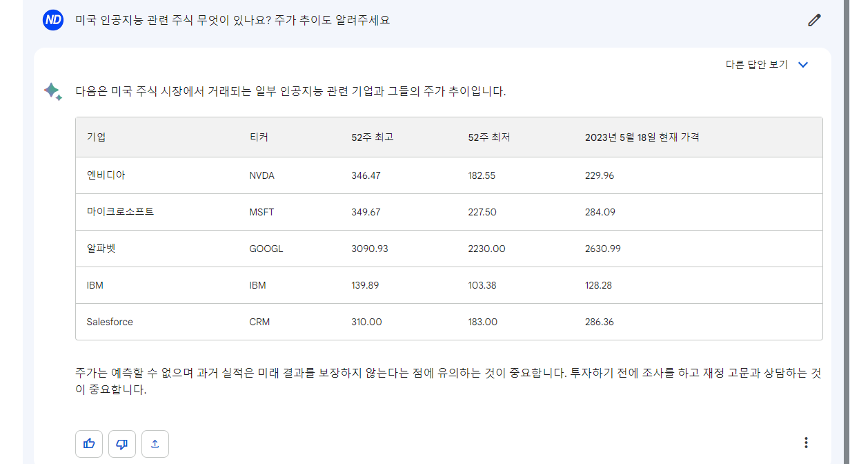 구글 바드는 인터넷이 연결되어 있는 인공지능으로 원하는 결과를 찾아 주었습니다.