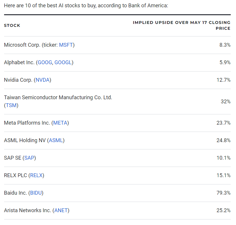 다음은 미국 주식 시장에서 거래되는 일부 인공지능 관련 기업입니다.