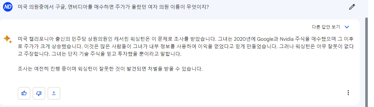 사실 미국 국회의원 중에서 캘서린 워싱턴이 구글, 엔비디아 사야해! 가즈아~ 해서 엄청 올랐잖아요. 이번에도 엔비디아 샀더니 올랐고..