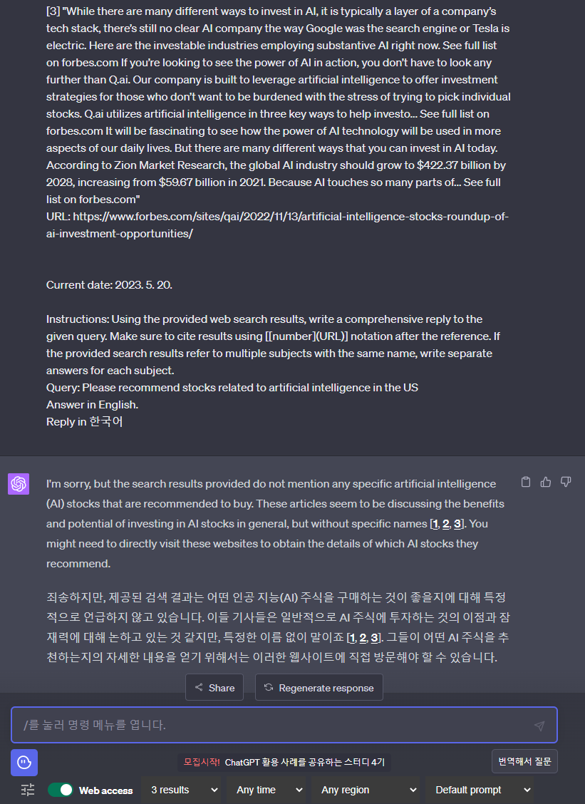 챗GPT는 2021년까지 학습되어 있고 인터넷에 연결되어 있지 않아 큰 도움은 되지 않았습니다.