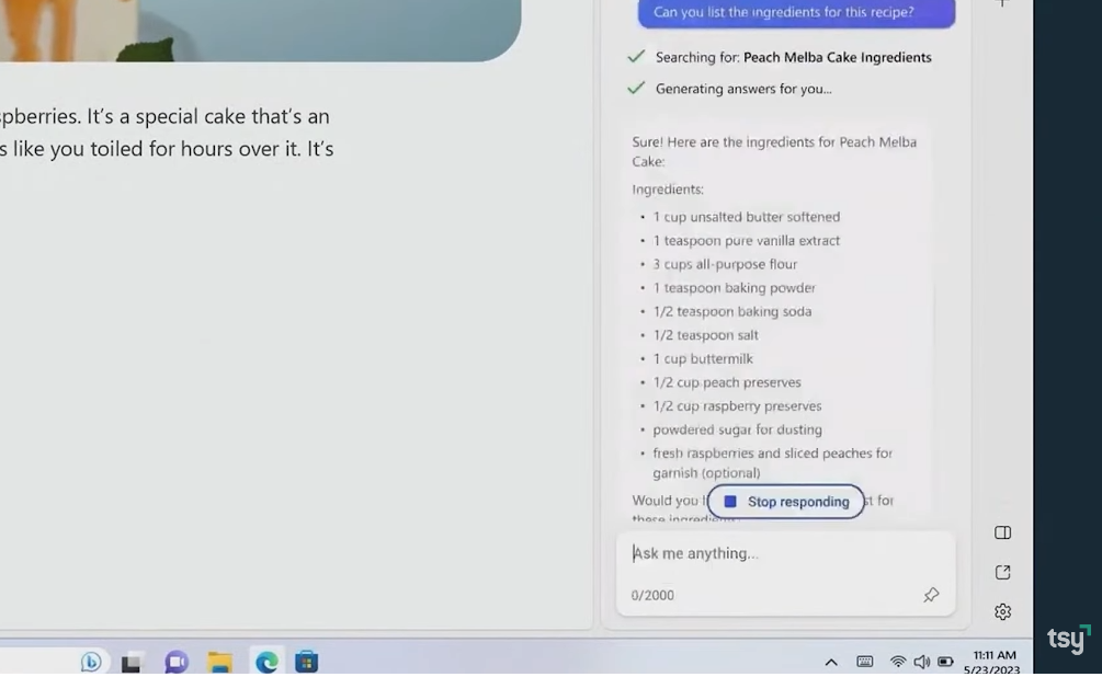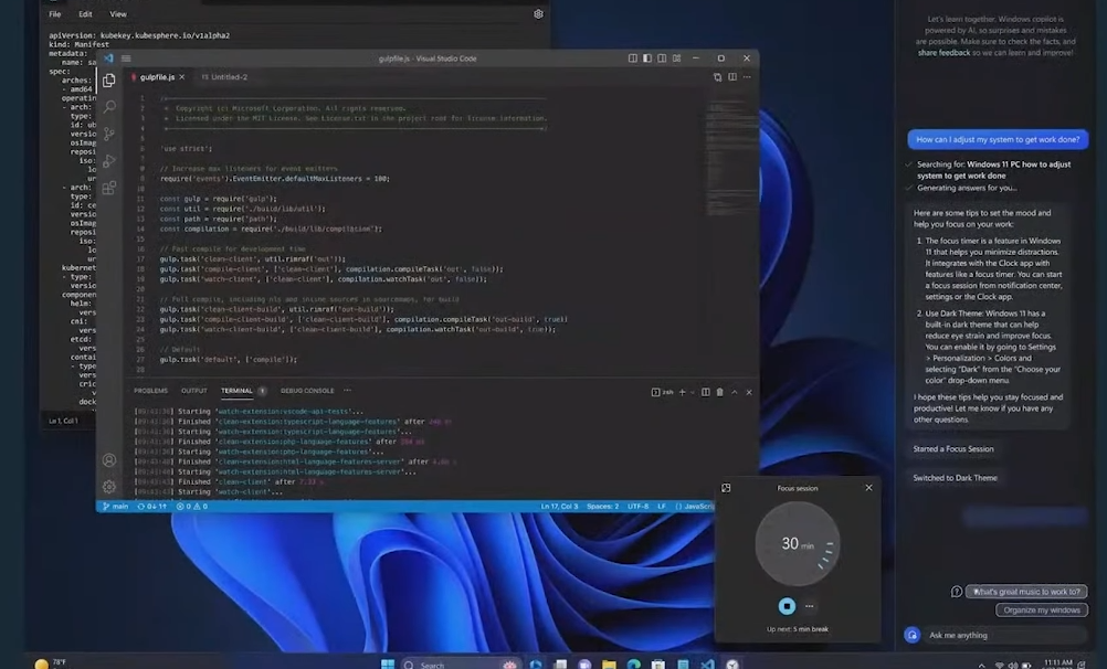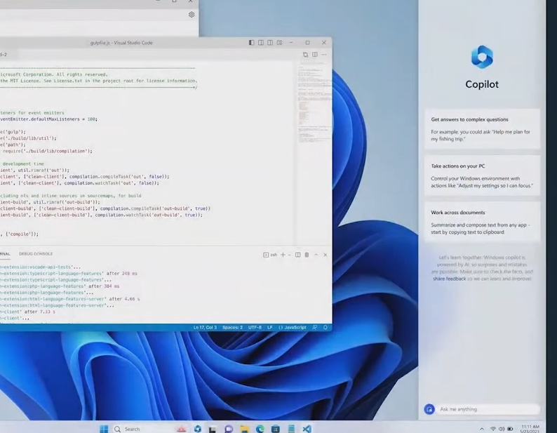 마이크로소프트는 우선 윈도우11에 AI 코파일럿을 탑재한다고 밝혔습니다. 이는 GPT-4 기반의 생성AI 지원 도구로, 마이크로소프트 365와 웹브라우저 '엣지(Edge)' 등에서 이미 사용되고 있는 기능입니다.