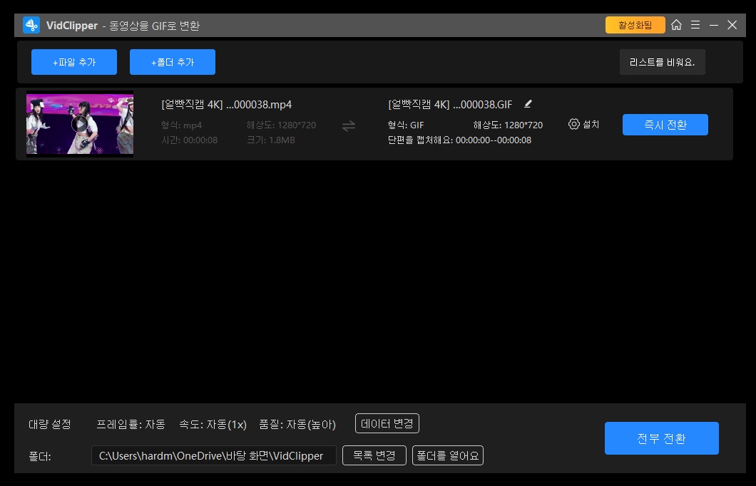 움짤 및 영상 자를 때 해상도 및 프레임도 마음대로 조절할 수 있습니다.