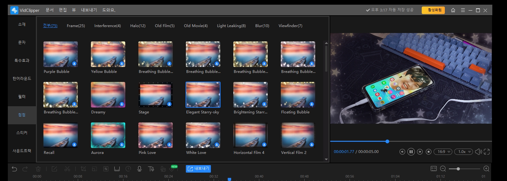 VidClipper는 사용하기 쉬운 인터페이스를 제공하여 초보자도 편리하게 사용할 수 있습니다. 텍스트, 필터, 오버레이, 특수 효과, 전환, 애니메이션 등 다양한 비디오 템플릿과 효과를 통해 창의적인 비디오 편집을 손쉽게 탐색할 수 있습니다.
