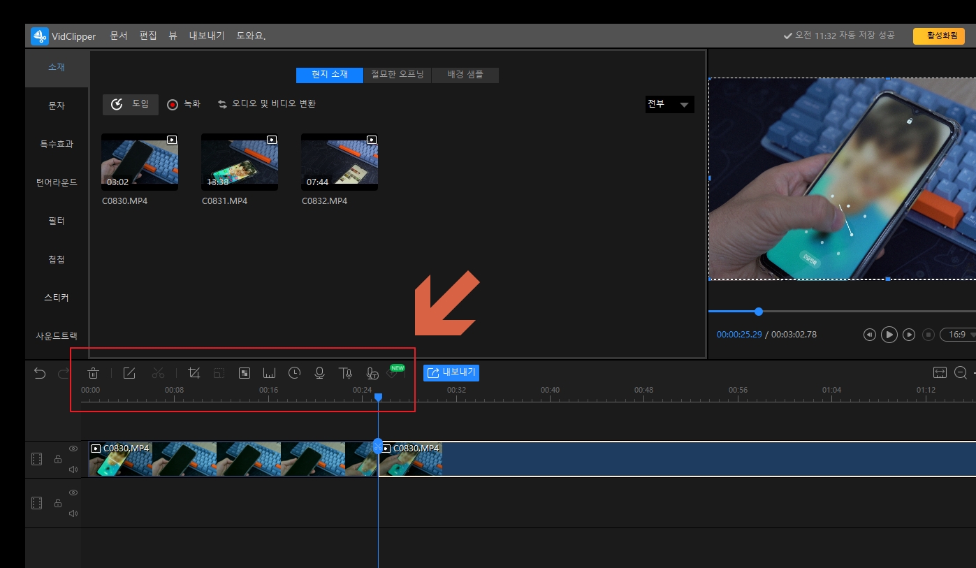 동영상 편집프로그램의 기본적인 영상 자르기 등의 편집을 지원했습니다.