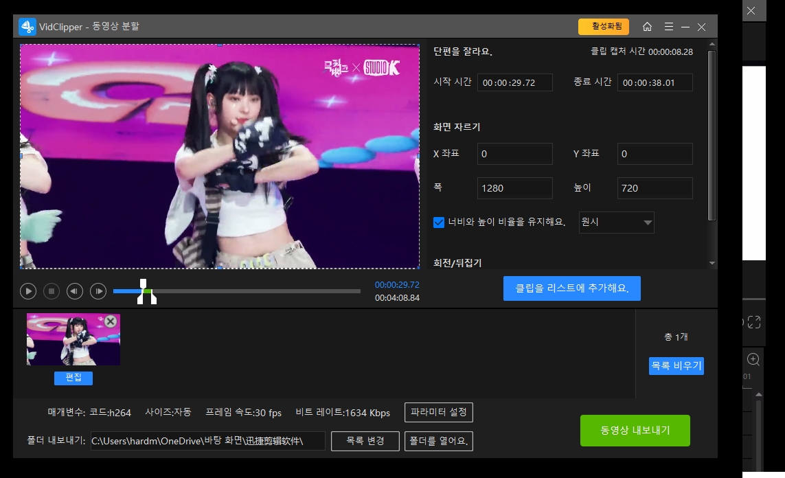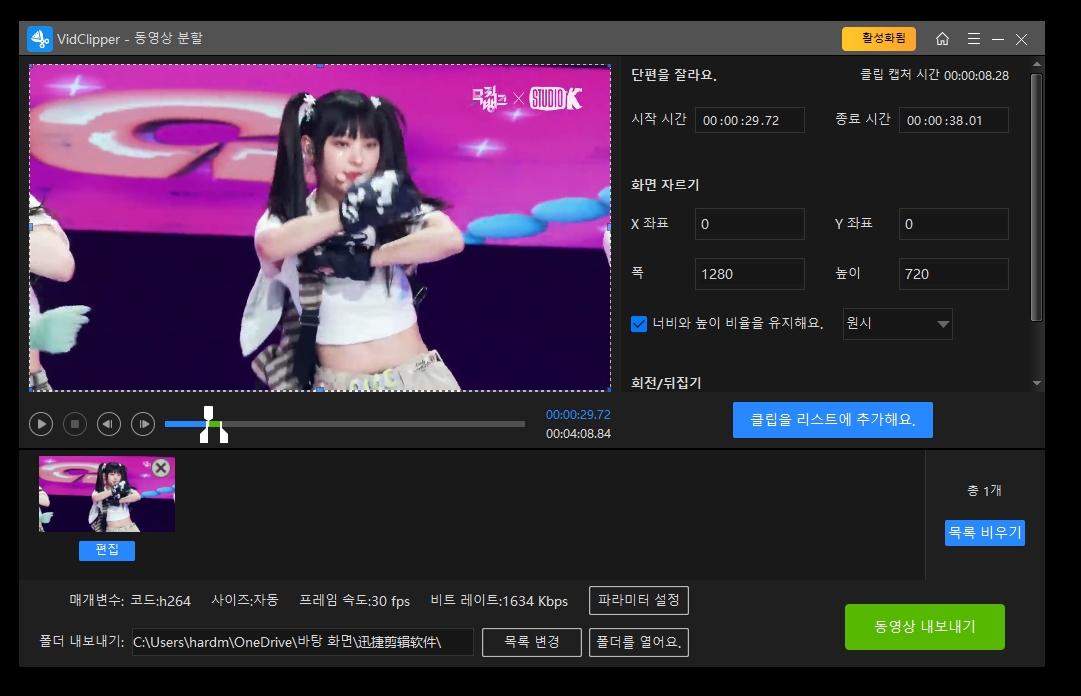 영상을 분할하고 GIF움짤로도 쉽게 바꿀 수 있습니다.