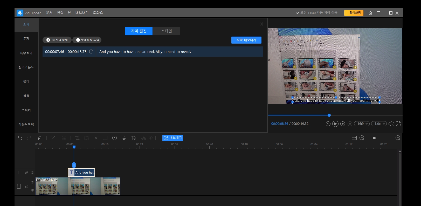 이렇게 쉽게 자막이 자동으로 들어갑니다.