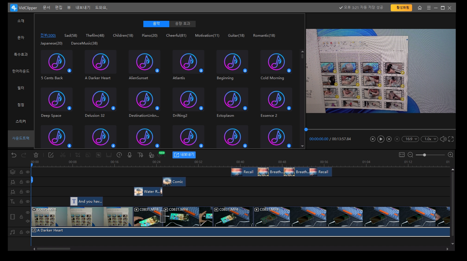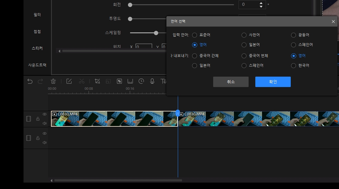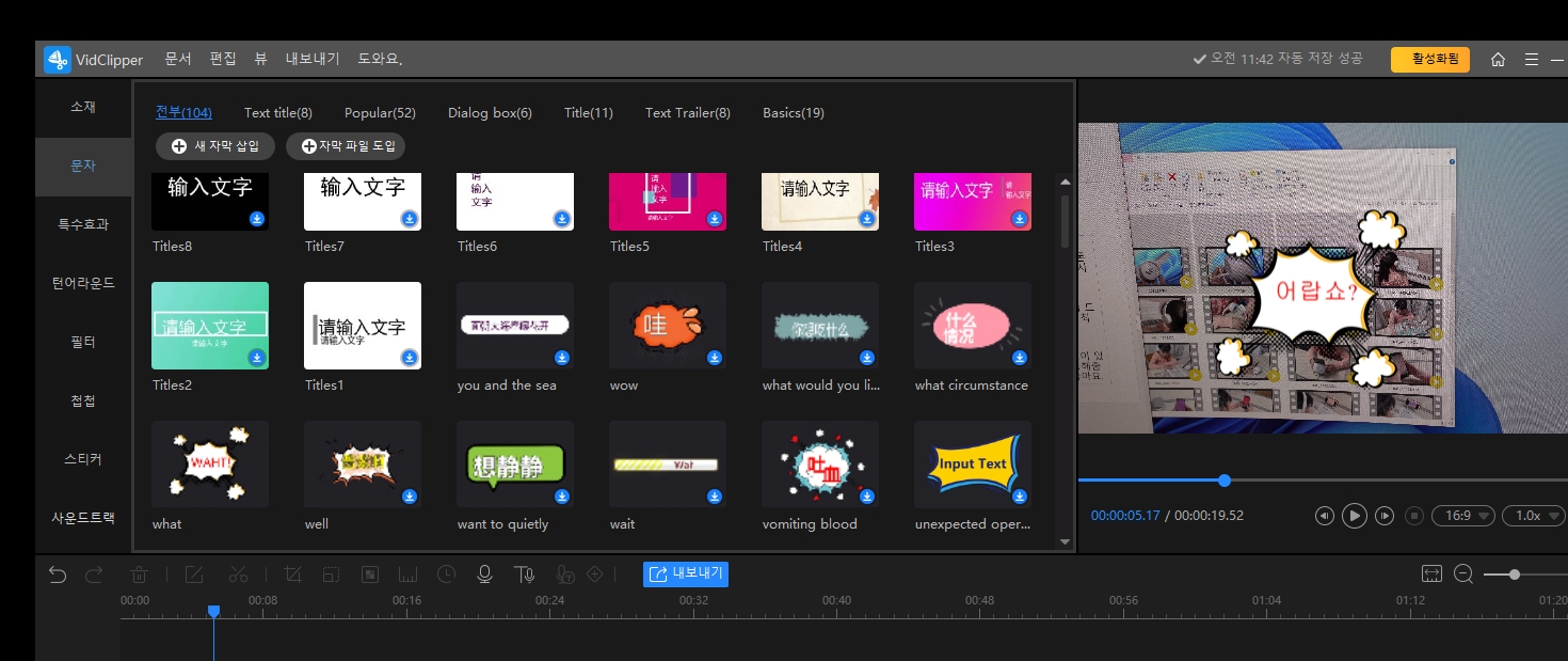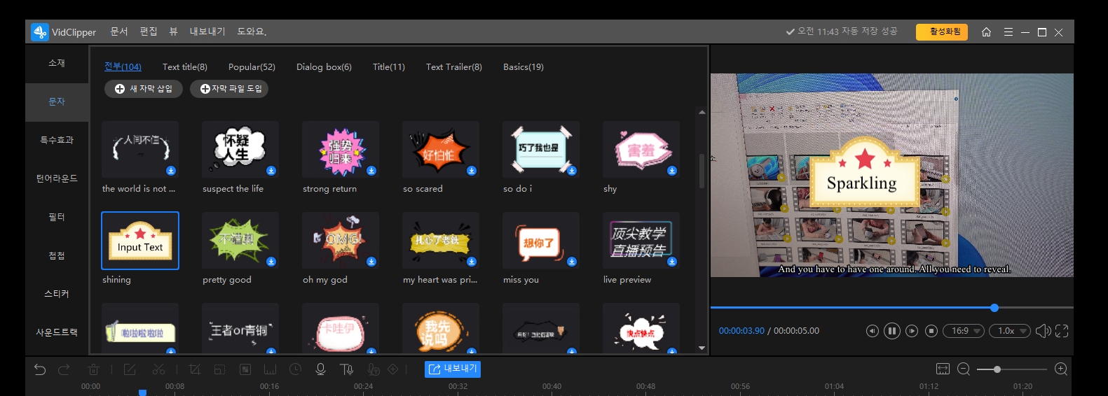 수동으로도 쉽게 자막을 넣어 영상을 편집할 수 있습니다.