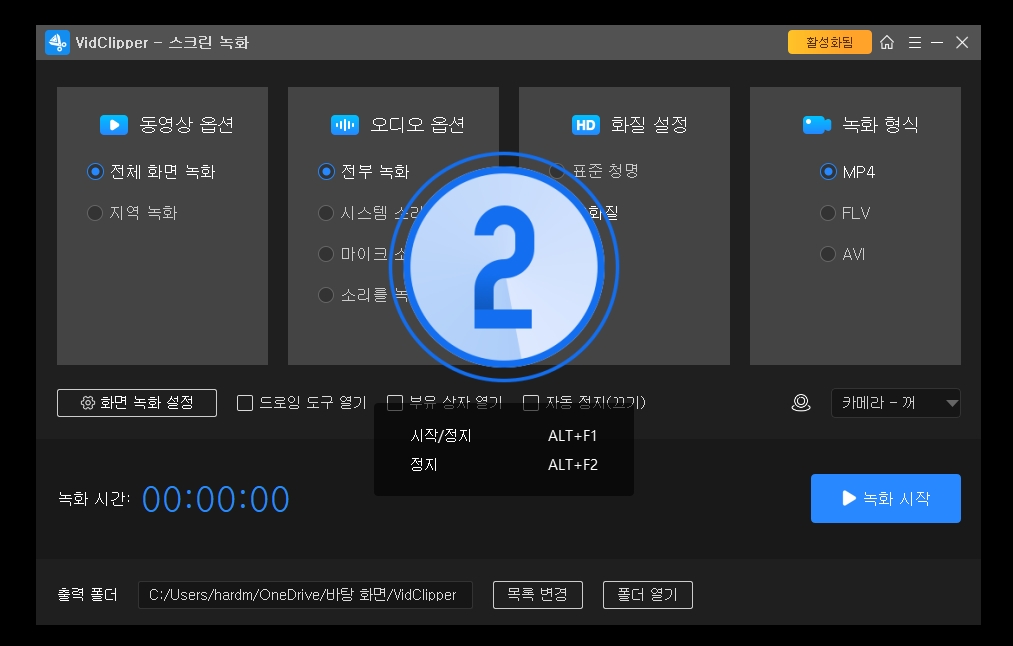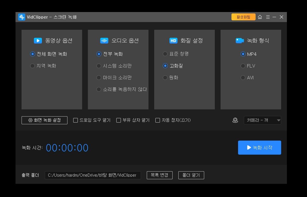 화면 녹화도 지원합니다. 인강을 녹화하거나 설명하는 영상을 제작할 때 컴퓨터 화면 녹화하는 프로그램이 필요한데, 손쉽게 사용할 수 있어 좋습니다.