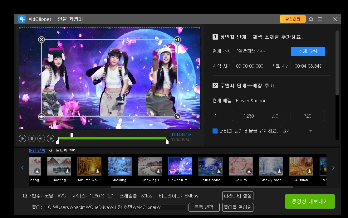 클릭 몇 번으로 뉴진스 인물만 자동으로 인식되고 배경은 바뀌는 효과가 나타나네요!!