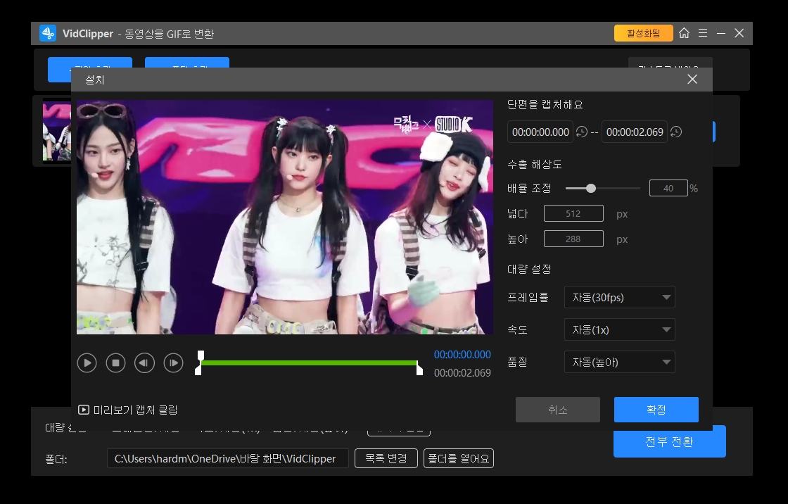 움짤 및 영상 자를 때 해상도 및 프레임도 마음대로 조절할 수 있습니다.