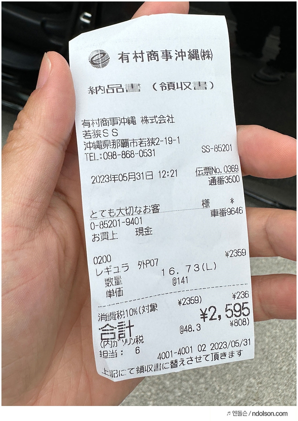 2595엔(24390원)의 주유비가 발생했네요.