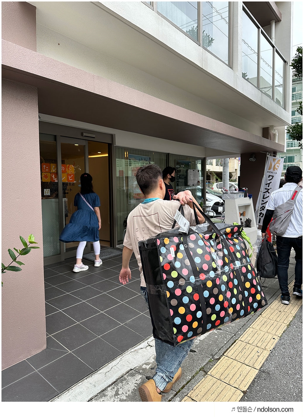 일본 렌트카 업체에 도착했습니다. 차에서 내려서 서류 작성하러 간사이에 차량에 짐을 다 옮겨 싦어 주었어요. 친절하네요.