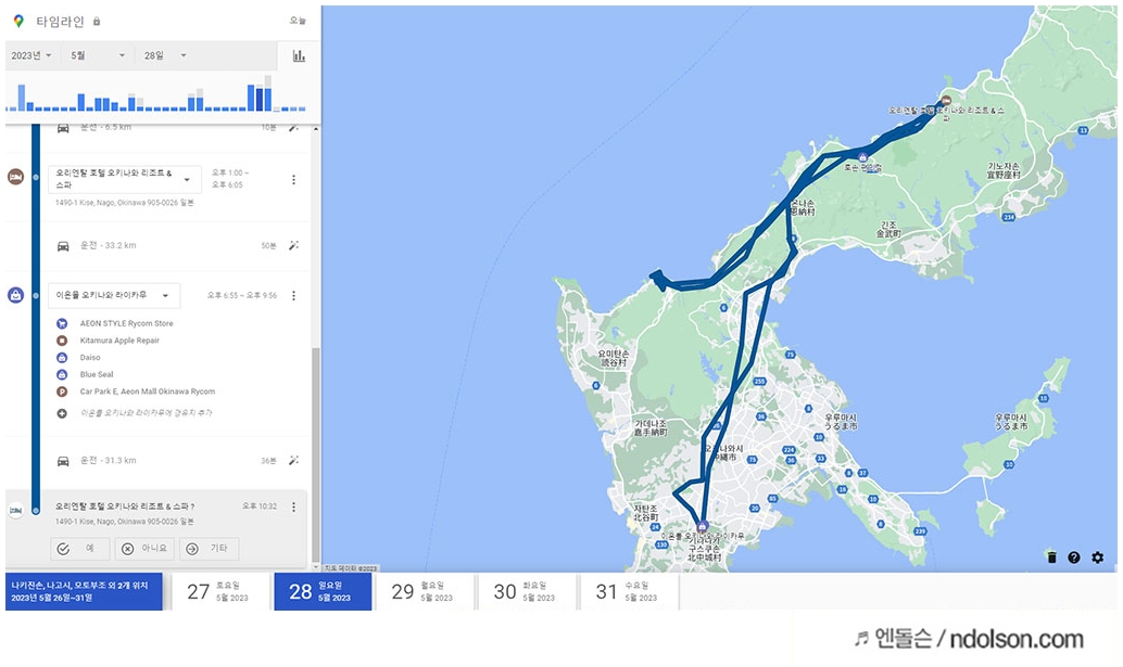 여행 후 구글 위치 타임라인 봐보세요. 여행한 곳 다 나오니 재미있네요.