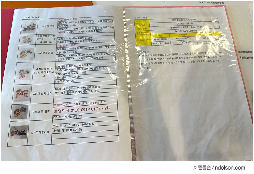 한국어가 되는 직원은 없지만, 한국어 설명서를 보여주면서 숙지하라고 알려주네요.