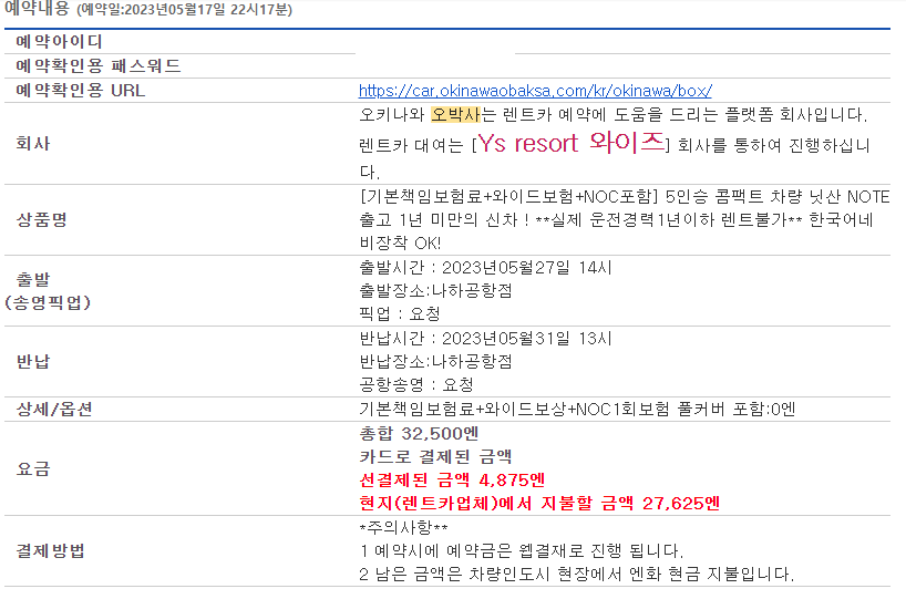 오키나와 여행하실 때 렌트카 알아보시면, 위의 렌트카로 신청해보세요!! 친절하고 공항픽업까지 너무 편했네요. 그럼~