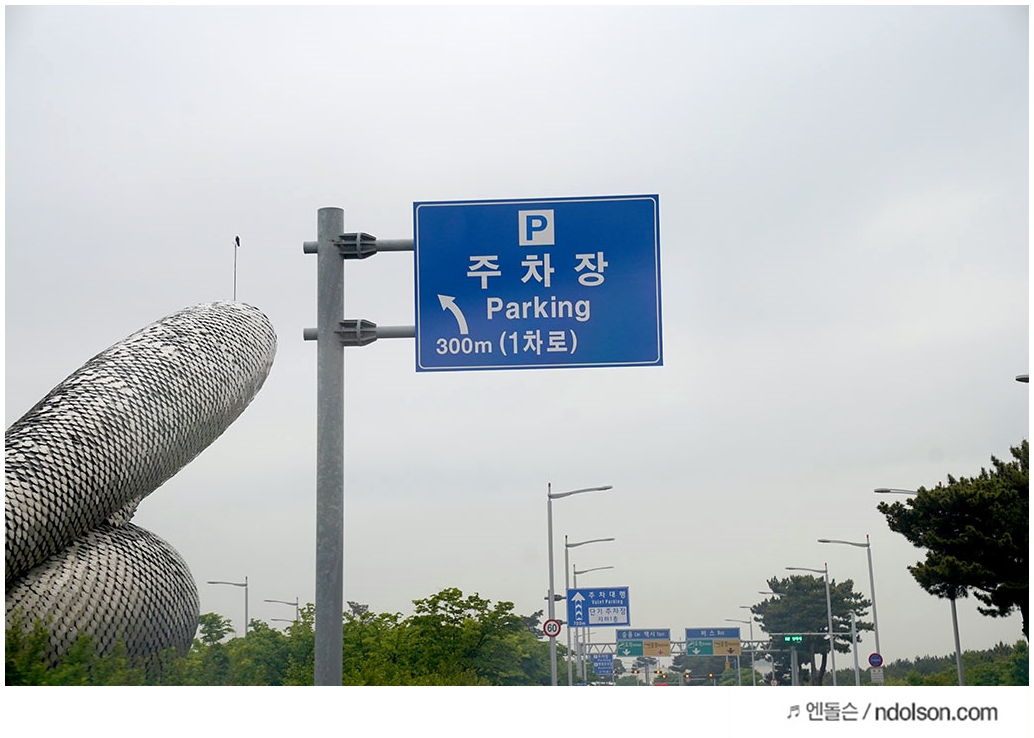 주차대행은 하늘색 선을 따라가면 됩니다.