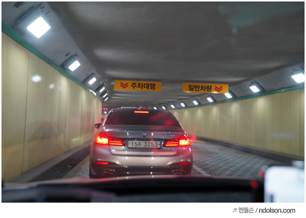 주차대행은 하늘색 선을 따라가면 됩니다.