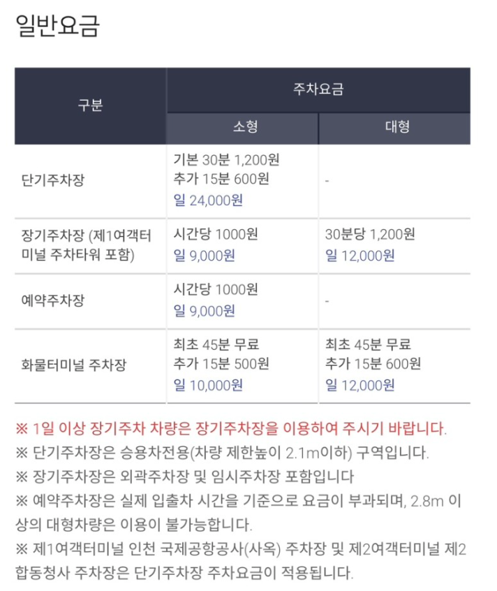 인천공항 단기주차 요금