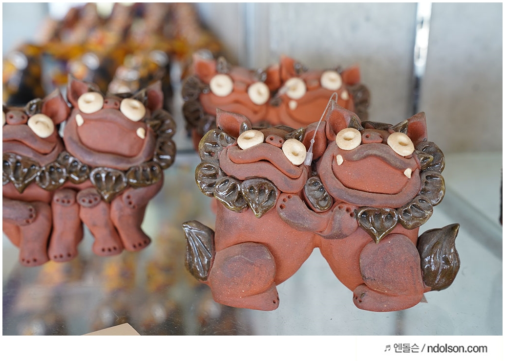 오키나와 수호신인 시사(Shisa)를 만들고 있던데요. 시사(Shisa) 장식품을 판매도 하는데, 망가질까 봐 사지 못했지만 이쁜 장신구가 많았어요.