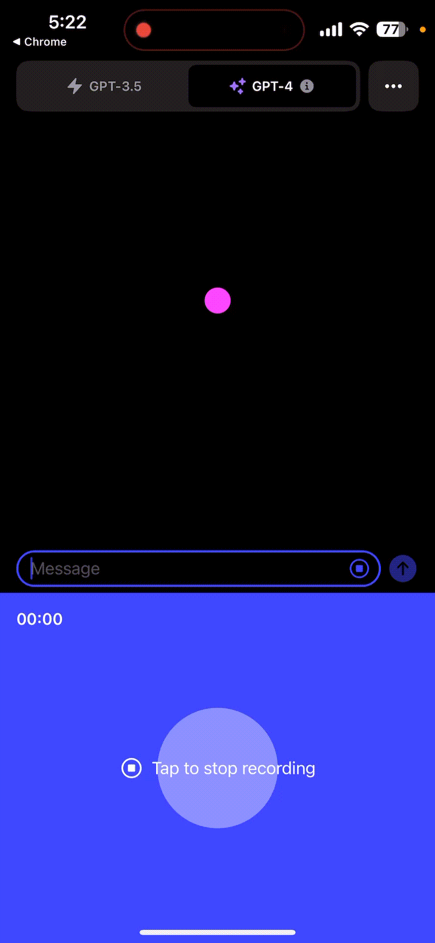 아래의 음성 받아쓰기를 누르면 편하게 말로 대화를 할 수 있습니다.