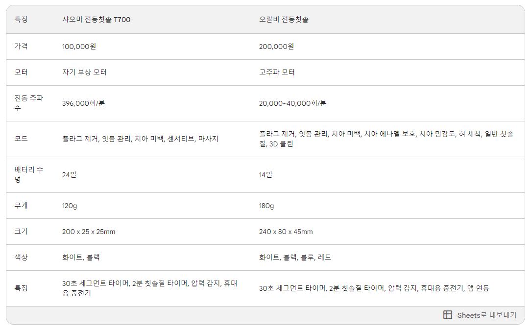 샤오미 전동칫솔 T700과 오랄비 전동칫솔은 어떤 차이가 있을까?