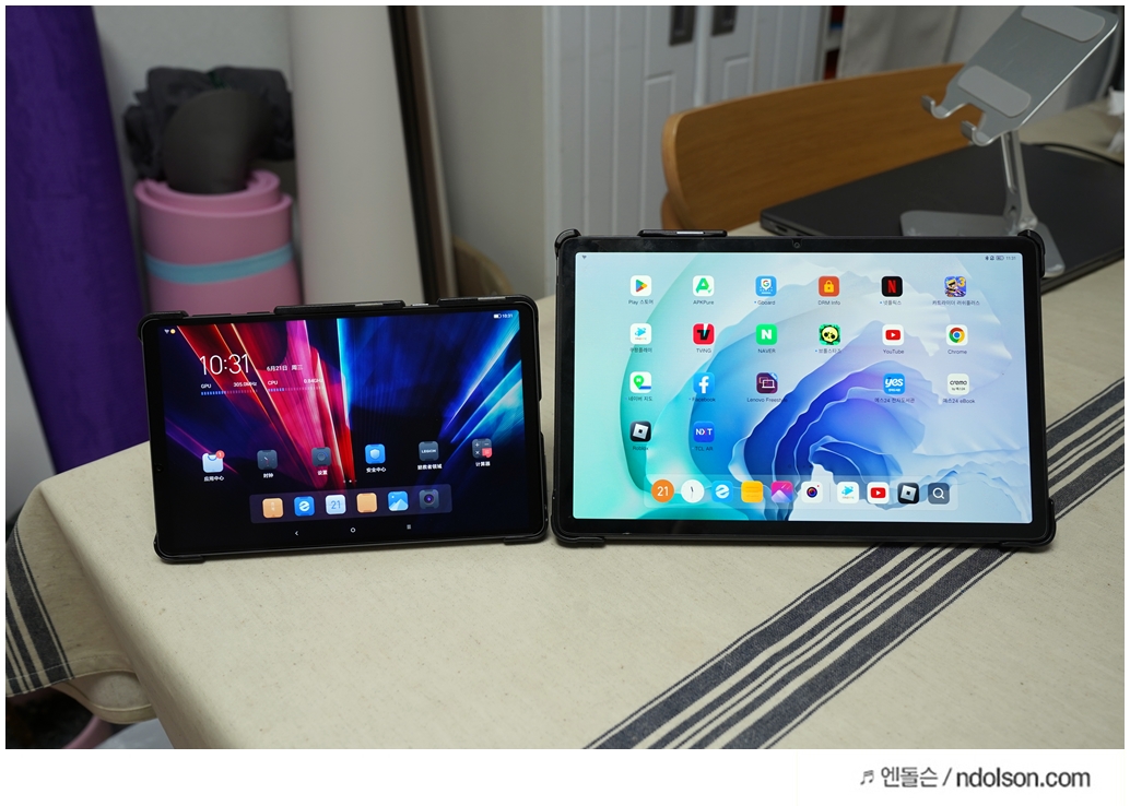 레노버 P12 프로와 리전 Y700을 비교하니깐 화면 크기가 차이가 납니다. 8.8인치와 11인치의 차이는 좀 큽니다. 그렇지만 게임을 터치로 하거나 들고 할 때는 레노버 Y700이 더 유리합니다. 가볍기 때문이죠.