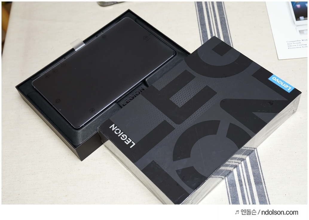레노버 Legion Y700 Wi-Fi 256GB를 개봉하였습니다. 고속충전단자와 케이블 매뉴얼이 제공됩니다.