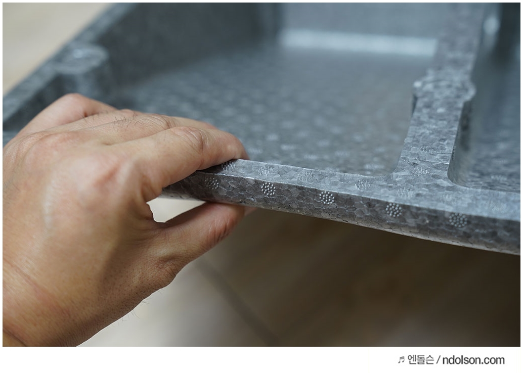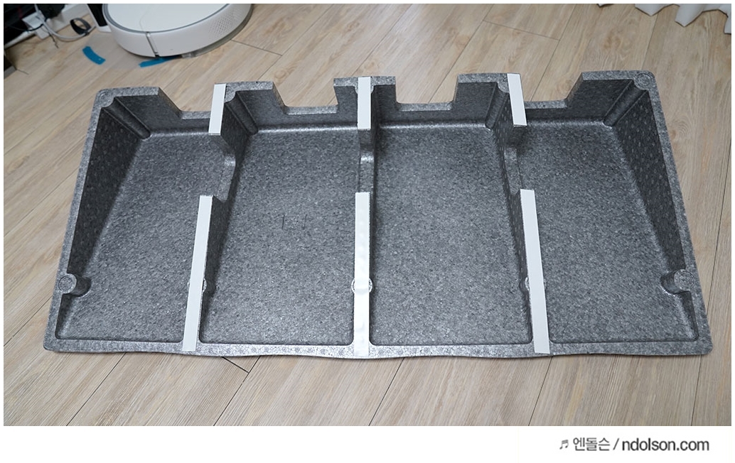 에어컨 실외기커버는 그레이 색상으로 무독성 난연 EPP를 사용하였고 메이드인 코리아입니다. 국산으로 튼튼하고 두께감 있게 제작이 되었네요.