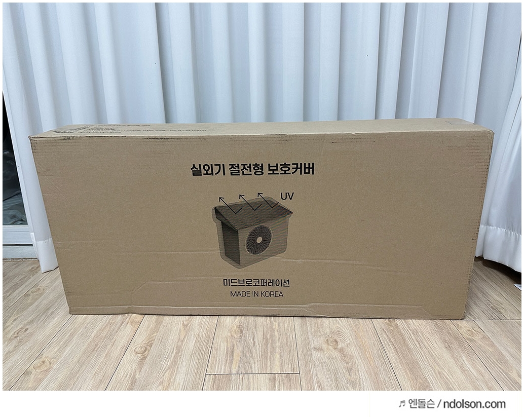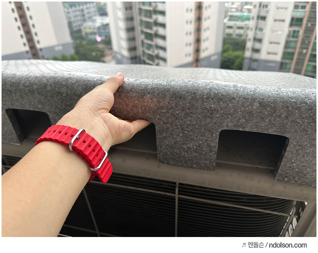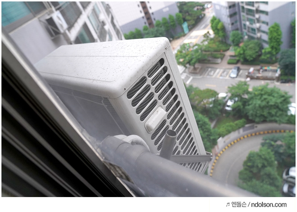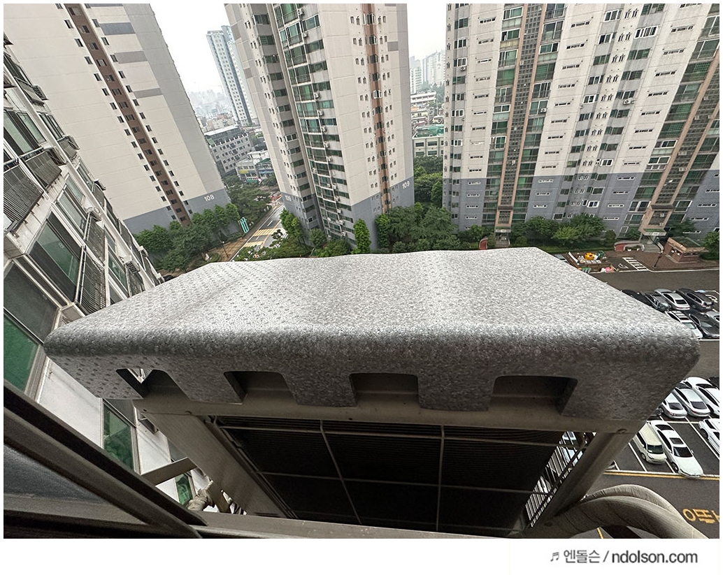 여름철에 실외기는 베란다 밖에 메달아 두었는 데, 날씨가 더운 여름이 될수록 실외기 커버를 한 것과 안 한 것의 차이가 크다는 점을 생각해서 설치하게 되었습니다.