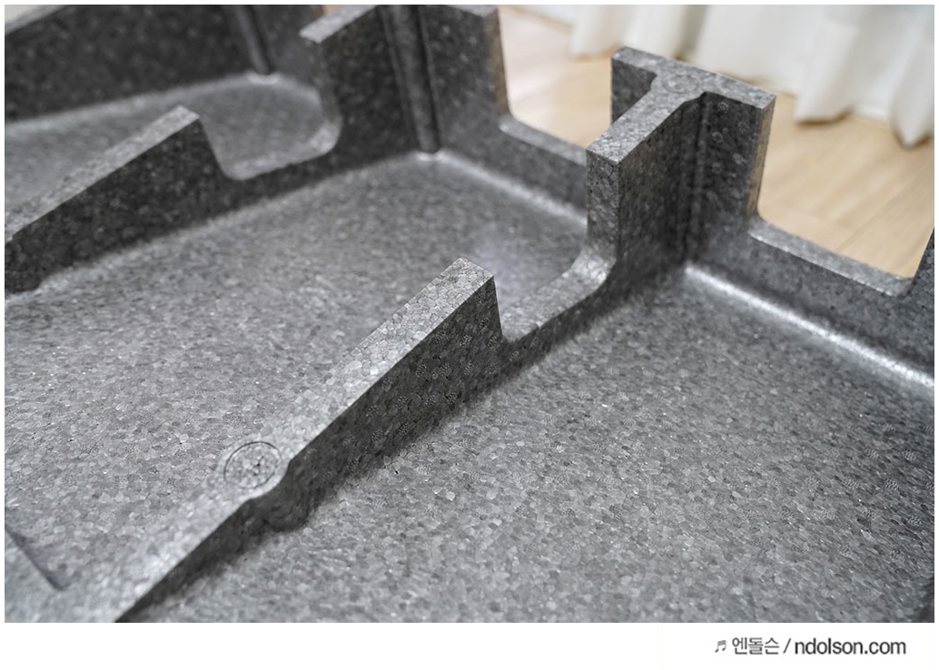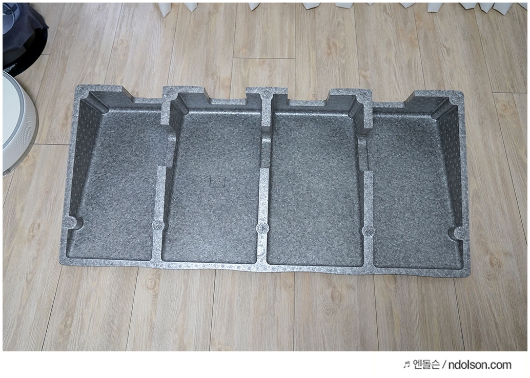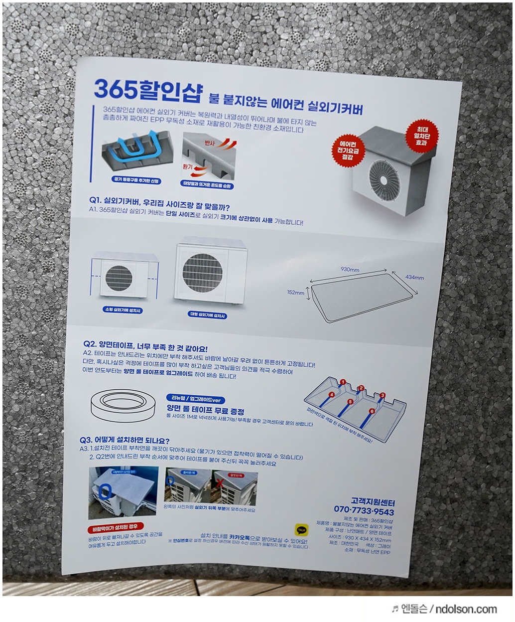 에어컨 실외기커버는 그레이 색상으로 무독성 난연 EPP를 사용하였고 메이드인 코리아입니다. 국산으로 튼튼하고 두께감 있게 제작이 되었네요.