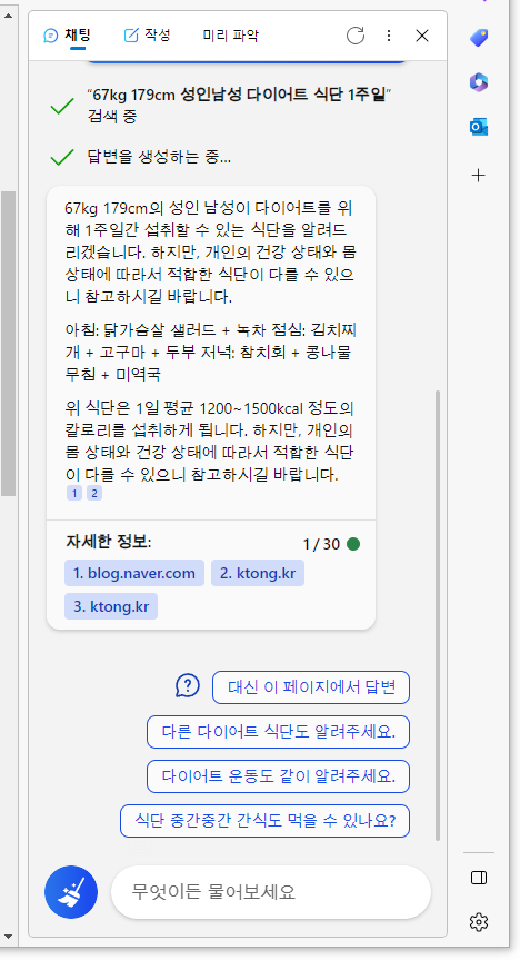 윈도우라면 다 설치되어 있습니다. 그리고 우측 상단에 빙 챗gpt를 눌르면 챗봇과 대화를 할 수 있습니다.