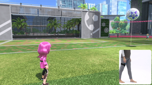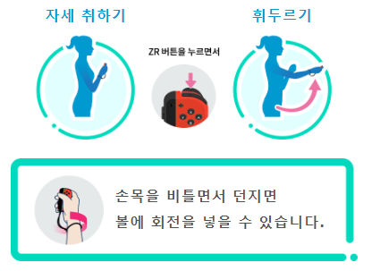 또 축구는 다른 종목과는 다르게 조이콘 1세트(2개)를 양손에 들고 플레이해야 합니다. 한 손으로 휘두르면 킥 동작이 되고 양손으로 휘두르면 다이빙 헤드 동작을 할 수 있습니다.