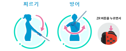 게임에서는 ZR 버튼을 누르면서 찌르기와 방어 동작으로 1:1 대전을 즐길 수 있습니다. 세 가지 종류의 검 중에서 하나를 선택할 수 있습니다. 그런데 쌍검을 사용하려면 조이콘 1세트(2개)가 필요합니다.