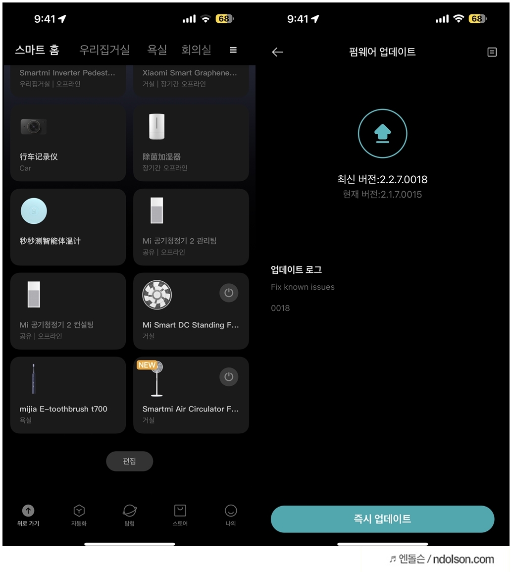 참고로 샤오미 미홈에서 설정 > 지역을 "중국"으로 해야지만, 업데이트와 앱 연동이 잘됩니다.