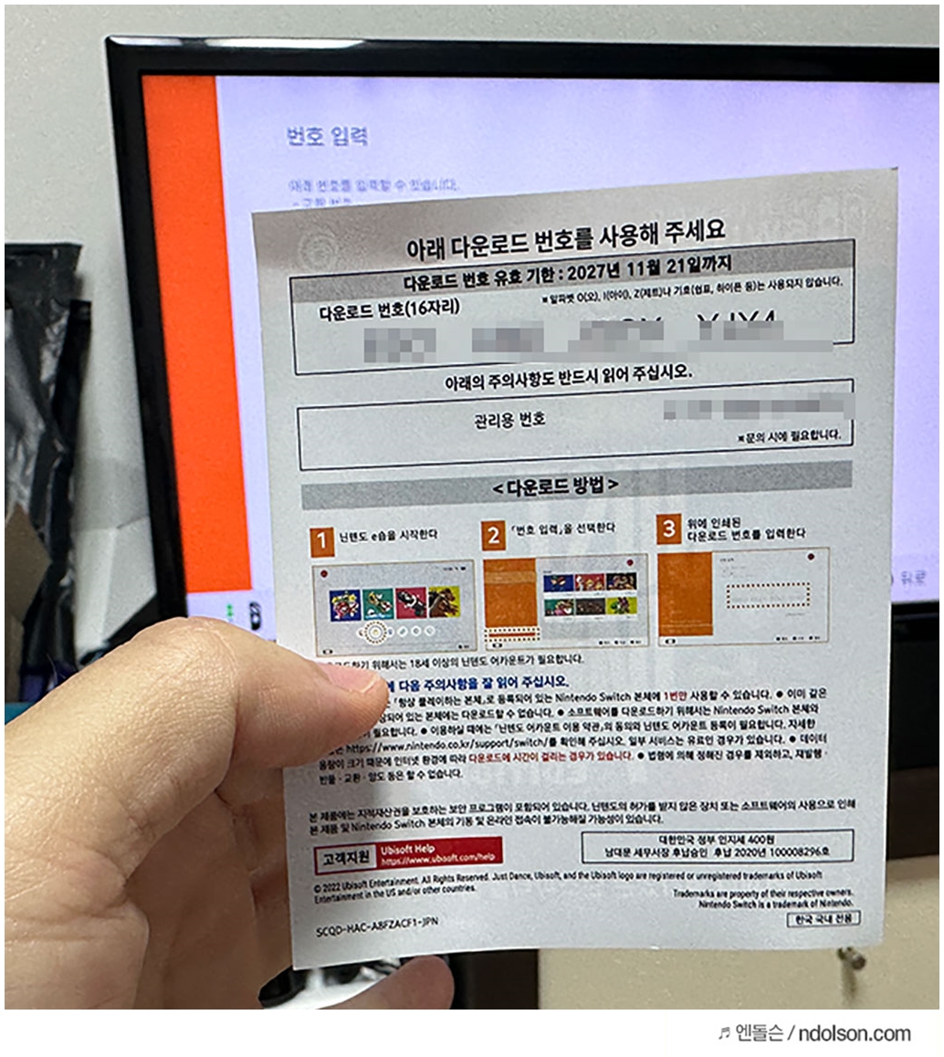 2023 저스트댄스는 게임팩 칩이 아니라 DL(다운로드)로 구매하였습니다. 그래서 닌텐도 스위치로 다운로드 받으려면, 닌텐도 쇼핑에서 번호 입력을 눌러서 다운로드하면 됩니다.