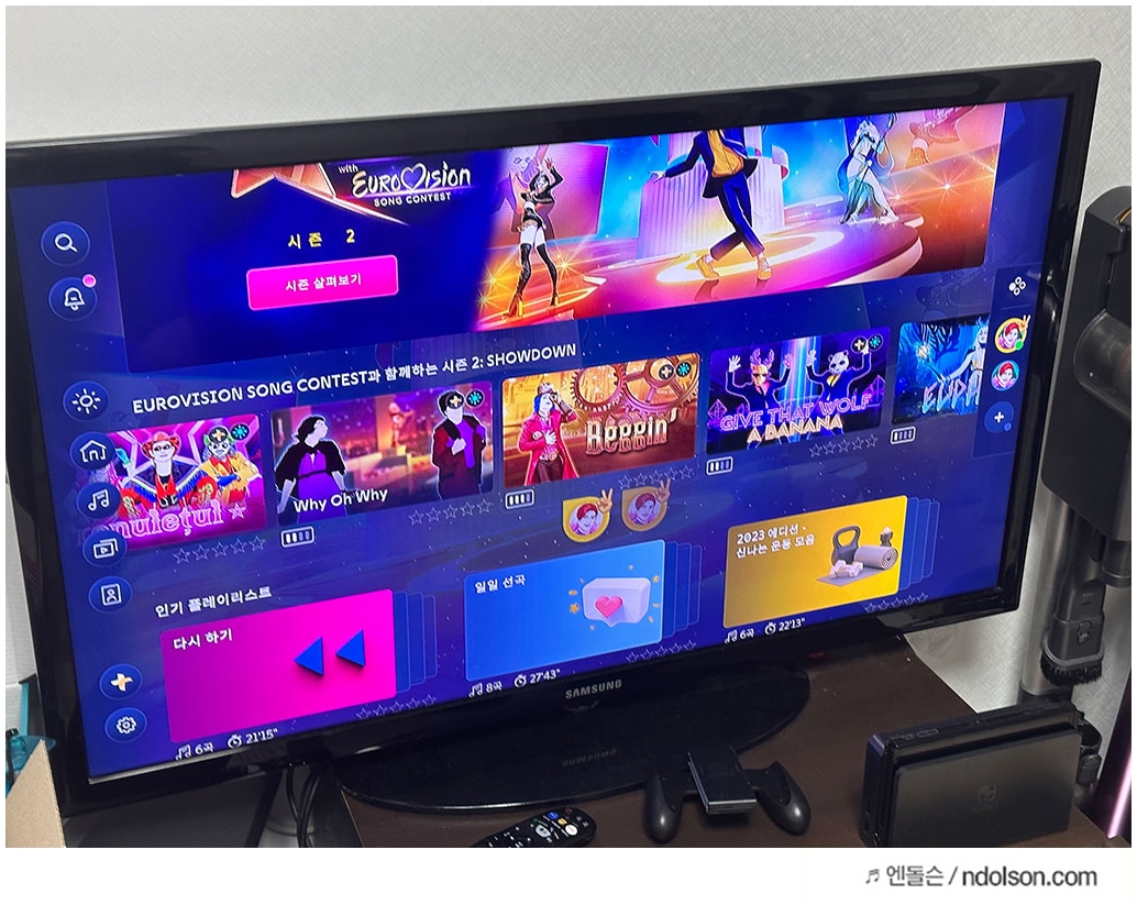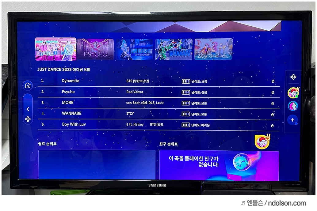 BTS, 레드벨벳 등의 K팝 노래들도 2023 저스트댄스에 수록되어 있는데요. 아무래도 아는 노래가 나오니깐 더 좋더라고요.