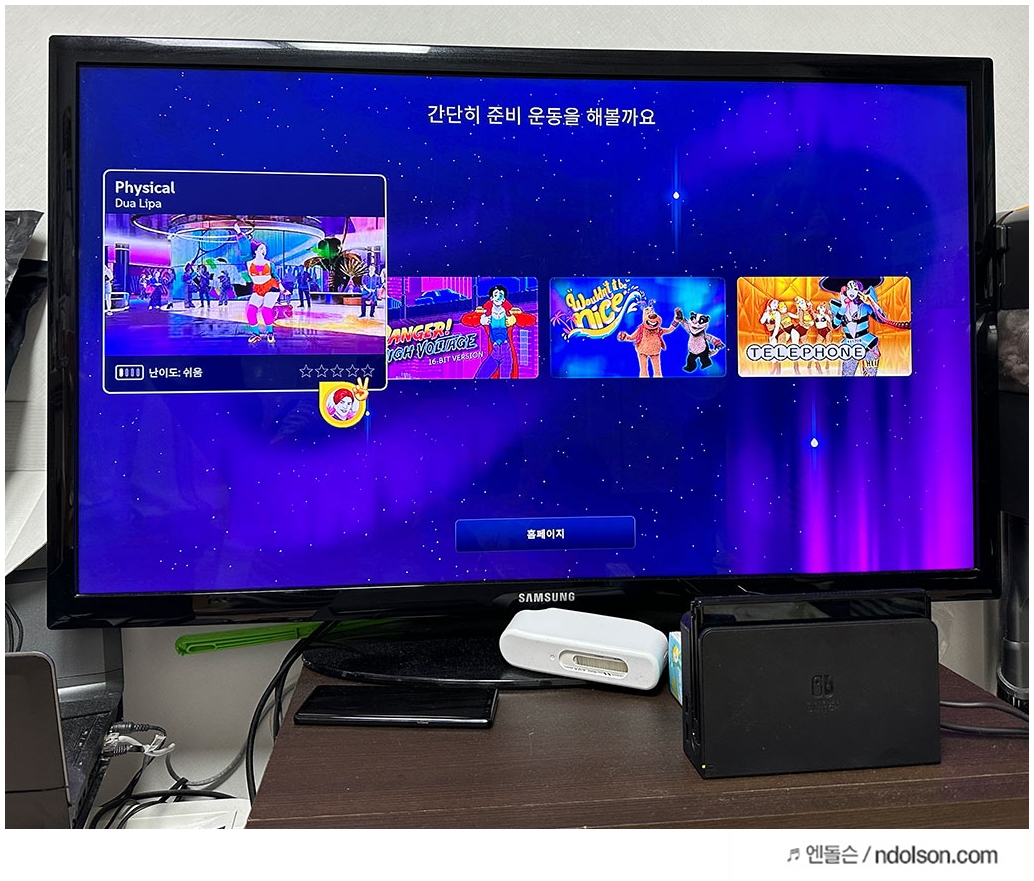 춤을 추는 재미와 운동 효과, 그리고 음악 들으면서 스트레스 해소? 정말 온 가족이 신나게 땀 내서 뛰니 좋네요. 정말 모두 만족시킬 수 있는 게임이었습니다. 생각보다 K-pop 곡들이 많이 수록되어 있어서 아는 곳이 나오면 더 신나더라고요.