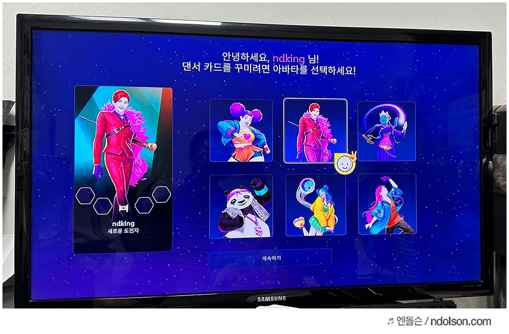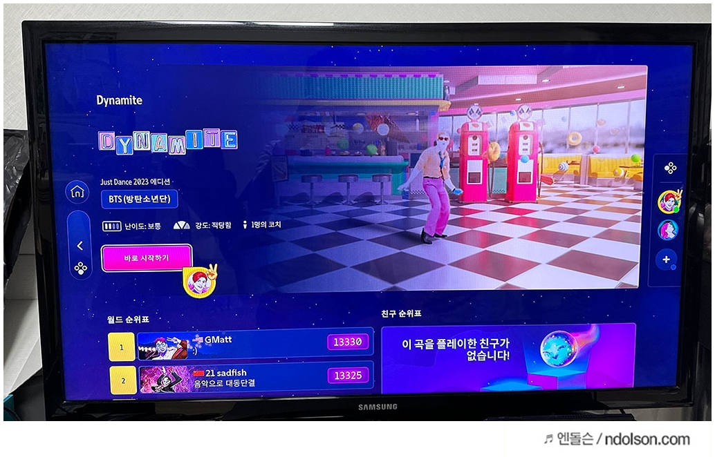 2023 저스트댄스 게임 시작할때, 자신의 춤선생을 선택하고 화면의 동작에 맞추어 춤을 추면 됩니다. 우승자도 있어 경쟁심이 발동되더라고요.