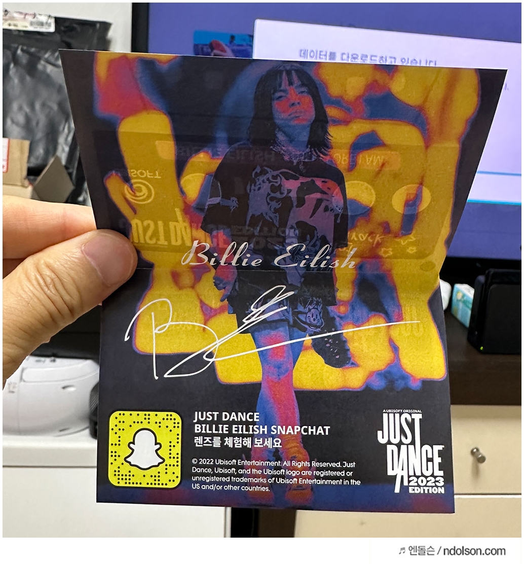 열어 보면, UBISOFT(유비아이소프트)의 저스트댄스 2023 에디션이라고 쓰여 있습니다. 또 2023년 버전에 맞게 매뉴얼도 있습니다. 칩셋은 없습니다. 되팔이가 안됩니다. 뭐 팔생각은 없고 계속 춤 쳐서 다이어트할 생각입니다.