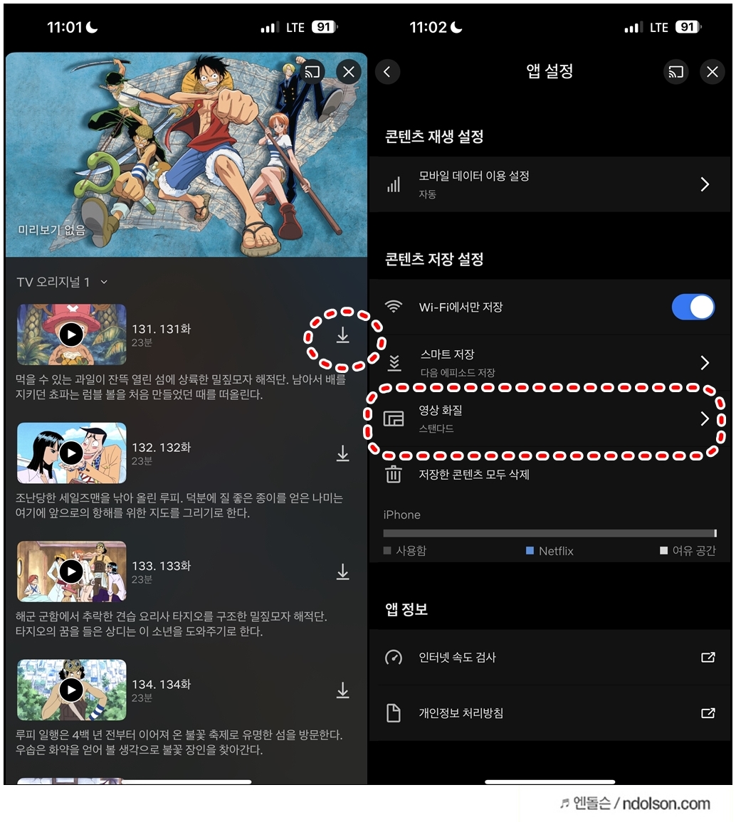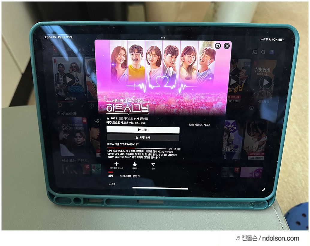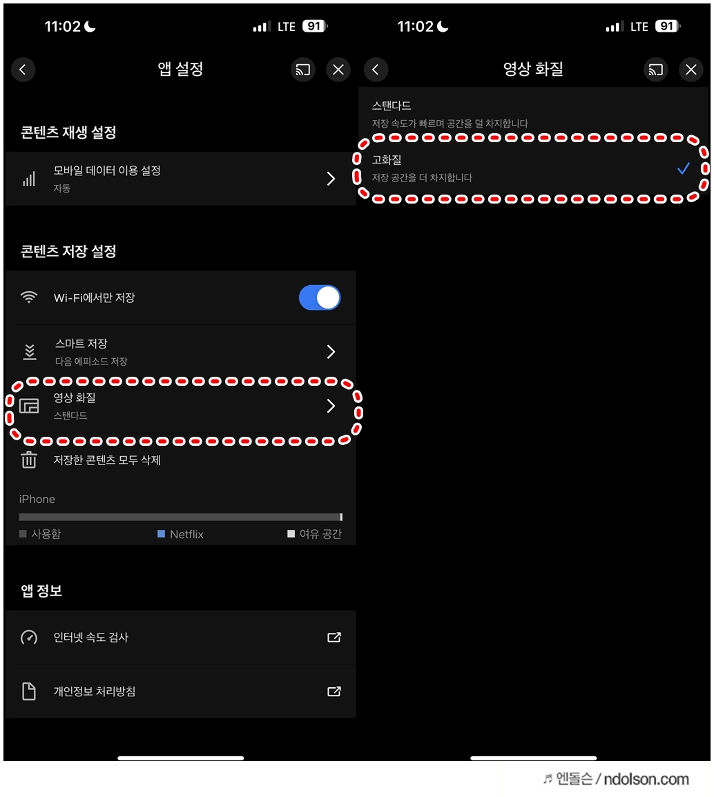 넷플릭스 저장할 때, 더 화질이 좋게 설정해서 저장할 수도 있습니다. 개인적으로 태블릿 용량이 크니깐, 고화질로 저장해서 봤습니다.