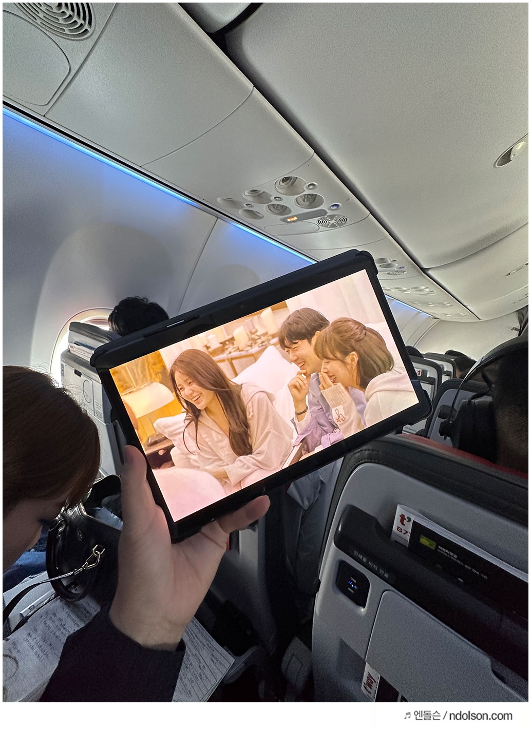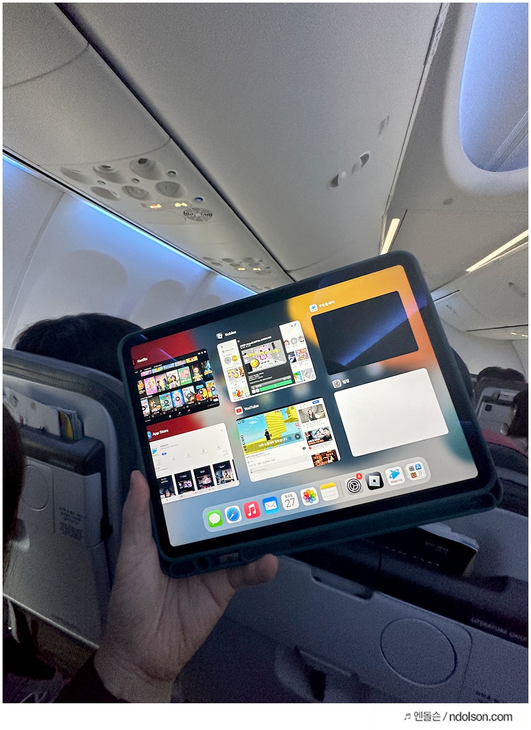 비행기에서 아이패드 프로와 레노버 P12 프로 2개의 태블릿을 준비해서 갔어요. 아무래도 스마트폰은 편한데 용량 제한도 있고 큰화면이 눈이 덜 아파서 태블릿을 애용합니다.