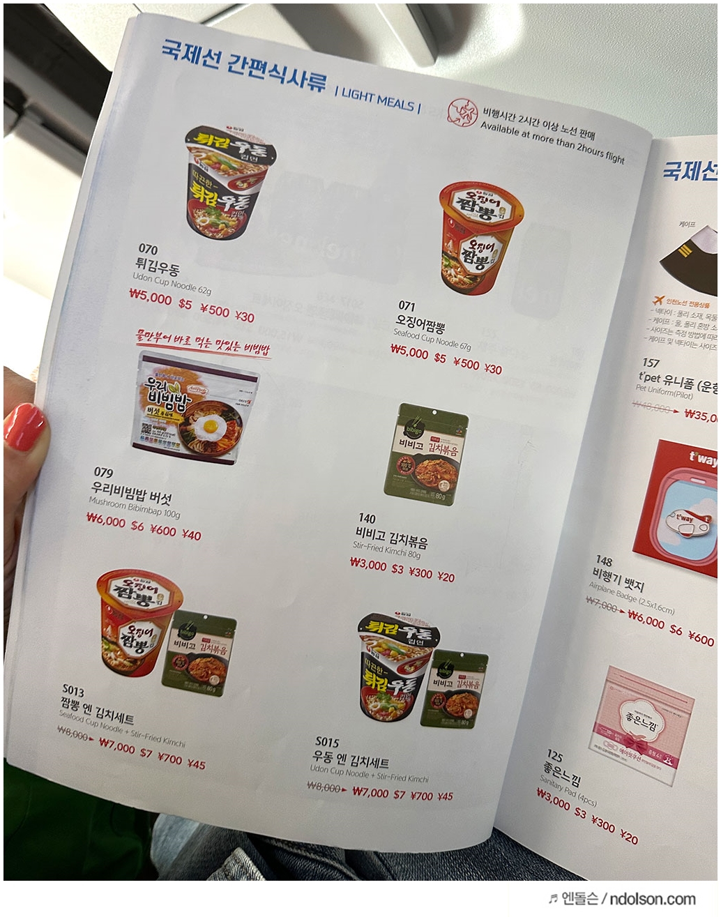 비행기 라면은 로망(?) 뭐 그런거잖아요. 하지만 배가 매우 고팠고 다른 승객이 라면 먹는 걸 보니 참을 수가 없어서 오징어 짱뽕을 시켰네요.