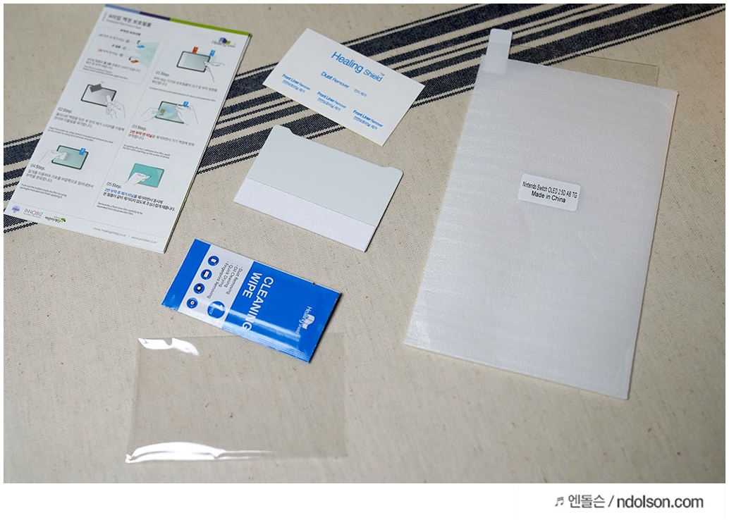 닌텐도 스위치 액정화면에 강화유리 부착에 필요한 패키지가 모두 들어 있습니다.