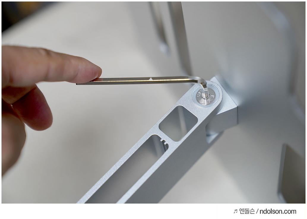 구성품으로 육각모 공구를 주기 때문에 더 조이거나 풀어 원한 노트북 거치대의 조절이 가능 합니다.