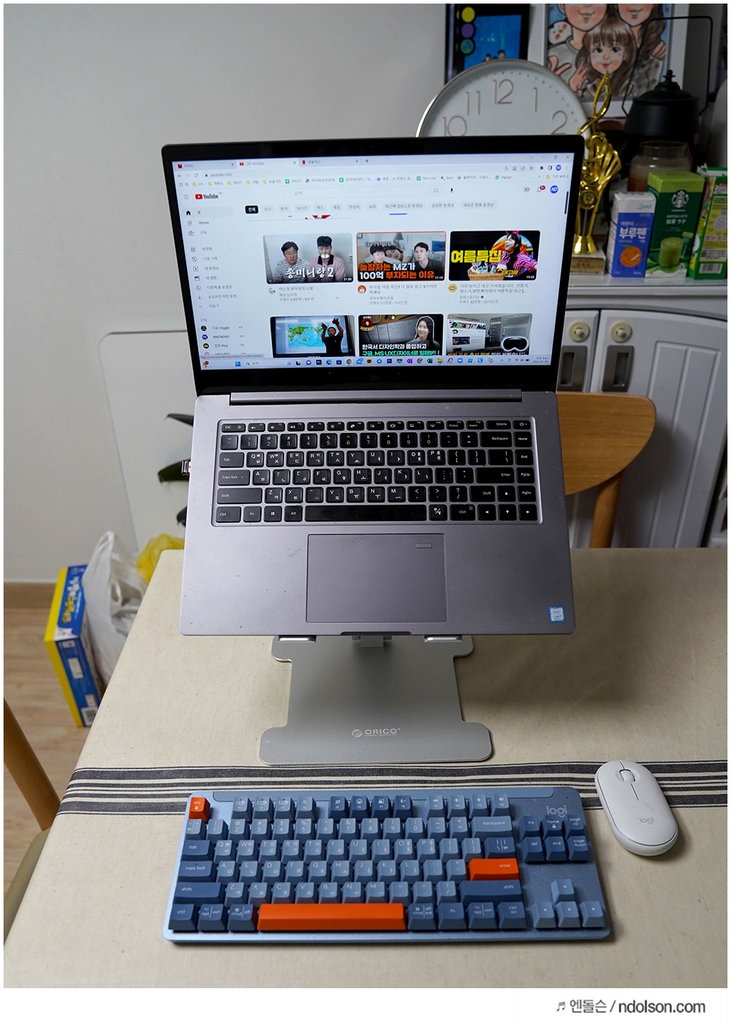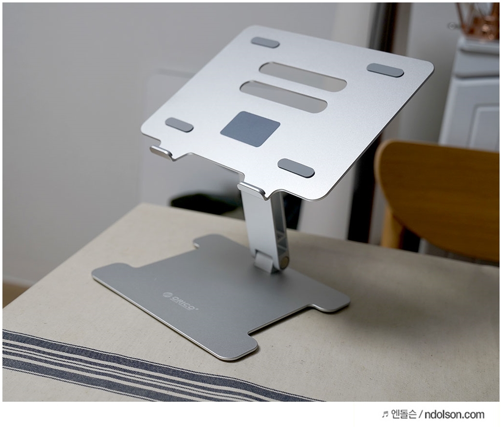 PC 컴퓨터 책상이 별도로 있지만, 데스크탑이 아닌 노트북은 들고 다니면서 거실에서도 사용합니다. 이럴 때 거실 식탁을 많이 차지 하던 공간을 오리코 거치대를 사용하니 훨씬 편하네요.