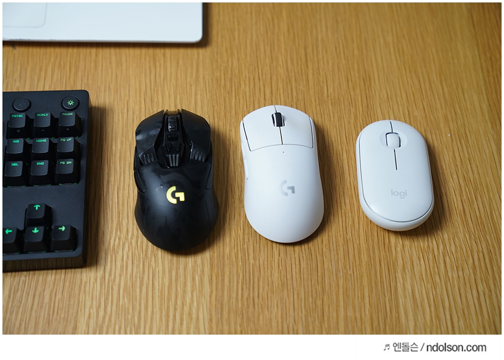 로지텍 G903, 블루투스 PEBBLE(M350) 마우스와 로지텍 G PRO X SUPERLIGHT 무선마우스가 주는 그립감과 외형, 무게 등의 차이가 납니다. 그래서 게이밍 유저들은 자신에게 맞는 마우스를 콜랙션으로 모으는 취미가 있나 봅니다.