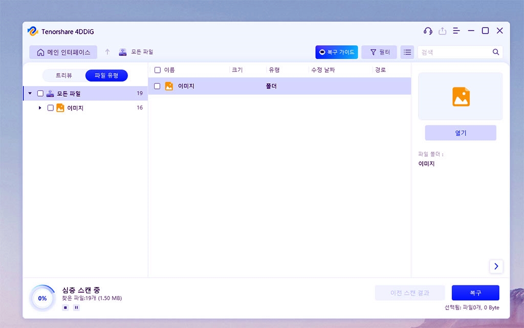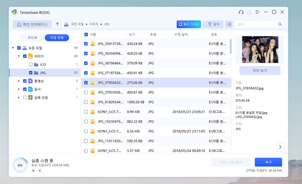 또 심층 스캔 도중 복구할 파일을 선택해서 미리 보면서, 스캔을 중지하면 시간을 절약할 수 있습니다.